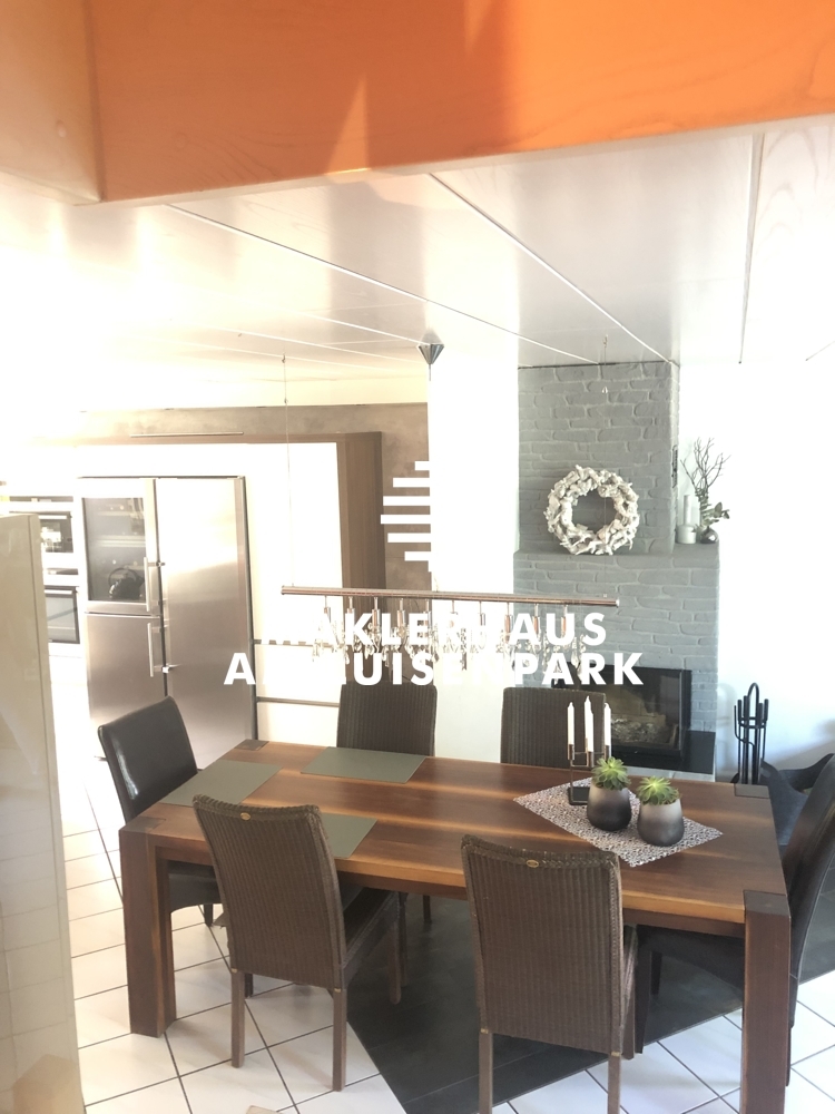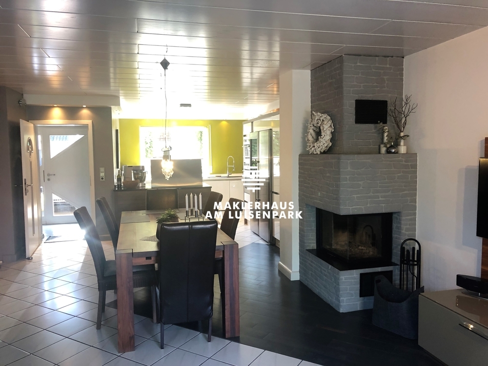 Im Wohn/Essbereich befindet sich ein moderner offener Kamin, der so gestaltet wurde, dass man damit das gesamte Haus beheizen kann. Dieser offene Kamin ist nahezu neuwertig, da er erst viel später eingebaut wurde und sehr gepflegt wird.