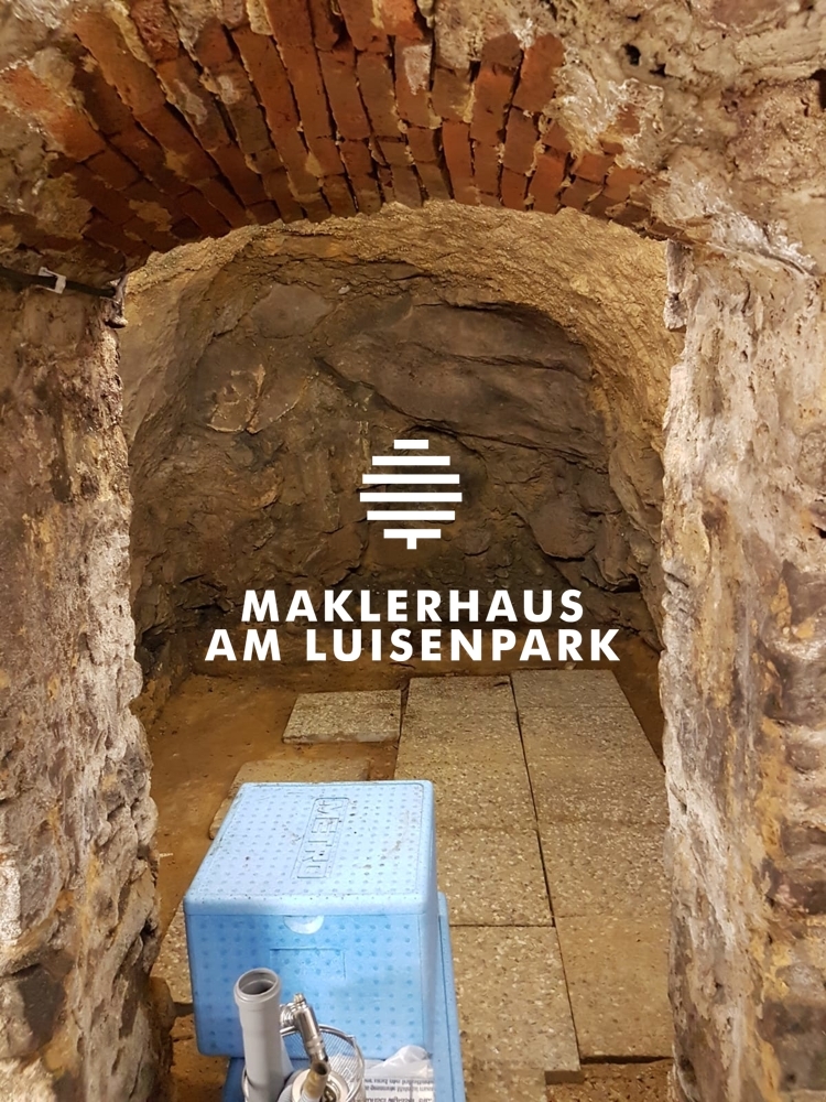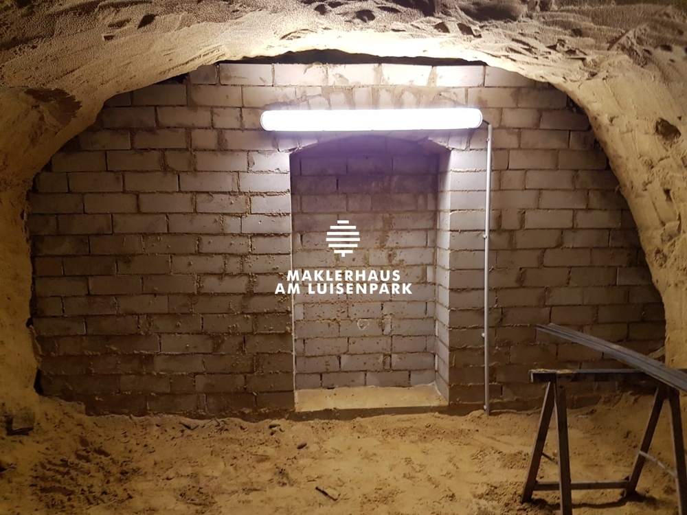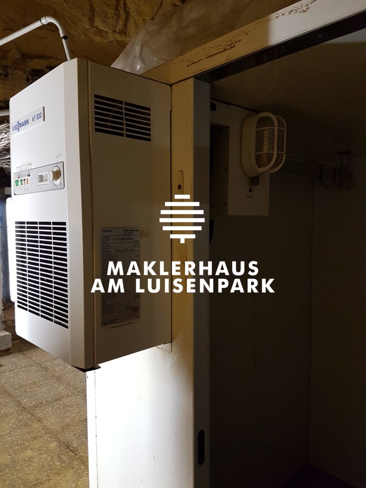 Weitere Tiefkeller ( 2 Geschosse), teilweise mit Gewölbe, teilweise mit Sandboden gehören ebenfalls zur Immobilie. Eine Kellerwand im Erdgeschoss vom Nachbarn wurde mündlich angemietet. Hier befinden sich weitere 4 Kühlschränke und ein großes Regal.