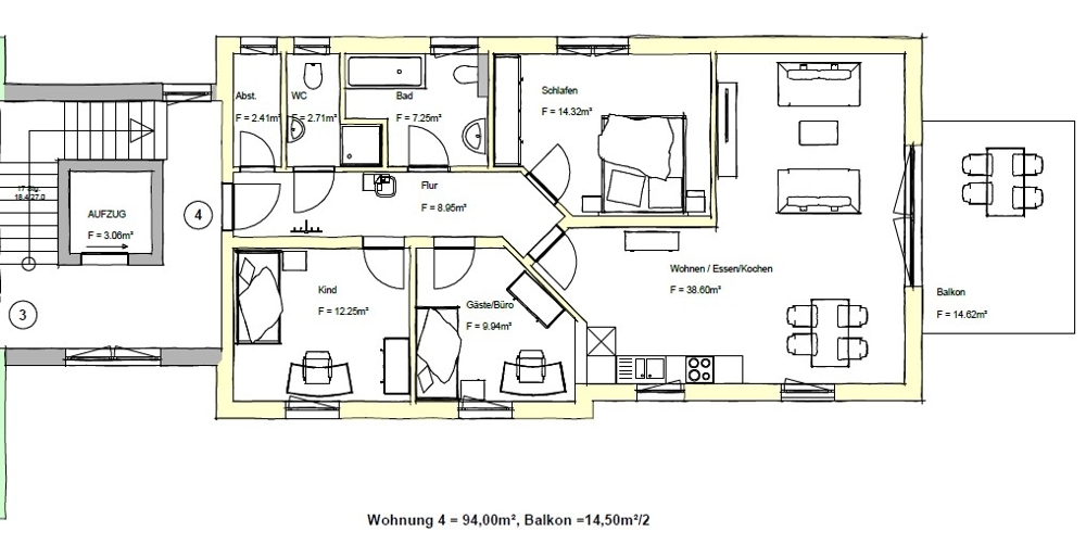 Ein besonderer Vorteil dieser Obergeschosswohnung ist der stufenlose Zugang zum Haus und der Fahrstuhl bis vor die Wohnungstüre, der komfortable und bequeme Wege ermöglicht – ideal für alle, die Wert auf einen mühelosen Einstieg ins Gebäude legen.