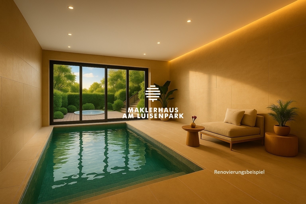 Zudem wurde hier ursprünglich der Einbau eines Schwimmbads vorgesehen – die baulichen Vorbereitungen dafür wurden bereits angelegt, die Fertigstellung jedoch nicht umgesetzt. Somit besteht für künftige Eigentümer die Möglichkeit, diesen Bereich individuell auszubauen oder anderweitig zu gestalten.