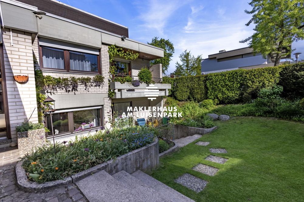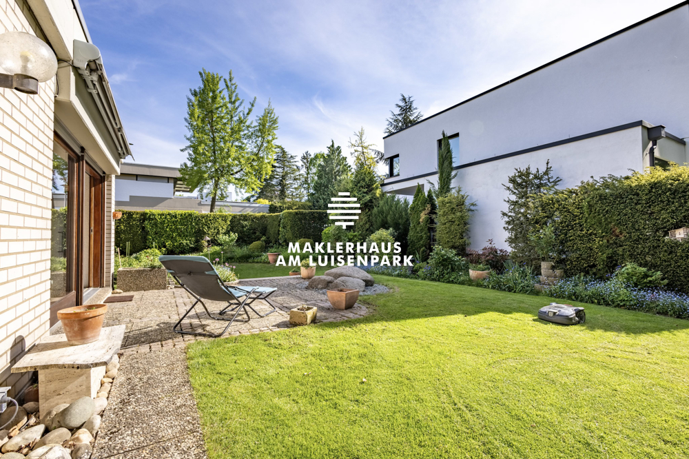 Der liebevoll angelegte, sonnenverwöhnte Garten mit edlem, alten Baumbestand wurde einst von professionellen Gärtnern gestaltet und bis heute gepflegt – ein privates Refugium mit höchstem Erholungswert.