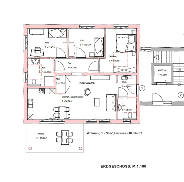 Der Zugang zur Wohnung ist ebenerdig und rollstuhlgerecht gestaltet.